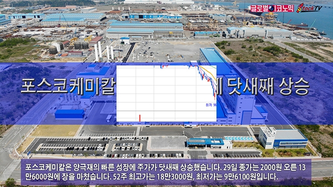 포스코케미칼은 양극재의 빠른 성장에 주가가 닷새째 상승했습니다. 29일 종가는 2000원 오른 13만6000원에 장을 마쳤습니다. 52주 최고가는 18만3000원, 최저가는 9만6100원입니다.