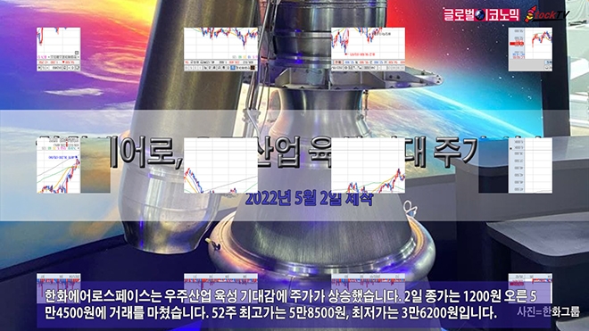 한화에어로스페이스는 우주산업 육성 기대감에 주가가 상승했습니다. 2일 종가는 1200원 오른 5만4500원에 거래를 마쳤습니다. 52주 최고가는 5만8500원, 최저가는 3만6200원입니다.