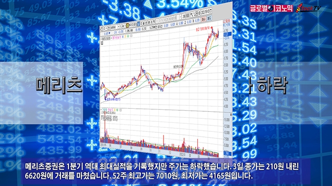 메리츠증권은 1분기 역대 최대실적을 기록했지만 주가는 하락했습니다. 3일 종가는 210원 내린 6620원에 거래를 마쳤습니다. 52주 최고가는 7010원, 최저가는 4165원입니다.