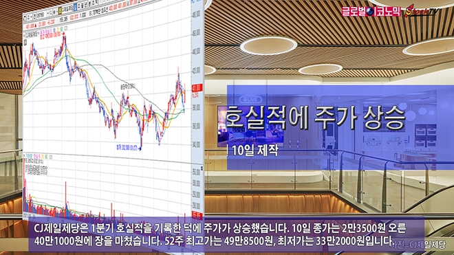 CJ제일제당은 1분기 호실적을 기록한 덕에 주가가 상승했습니다. 10일 종가는 2만3500원 오른 40만1000원에 장을 마쳤습니다. 52주 최고가는 49만8500원, 최저가는 33만2000원입니다.
