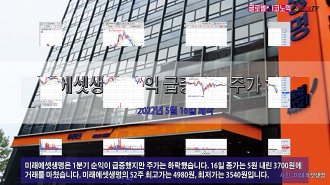 미래에셋생명은 1분기 순익이 급증했지만 주가는 하락했습니다. 16일 종가는 5원 내린 3700원에 거래를 마쳤습니다. 미래에셋생명의 52주 최고가는 4980원, 최저가는 3540원입니다.