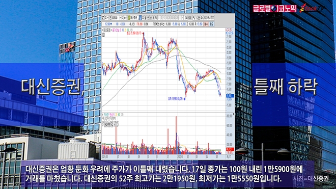 대신증권은 업황 둔화 우려에 주가가 이틀째 내렸습니다. 17일 종가는 100원 내린 1만5900원에 거래를 마쳤습니다. 대신증권의 52주 최고가는 2만1950원, 최저가는 1만5550원입니다.