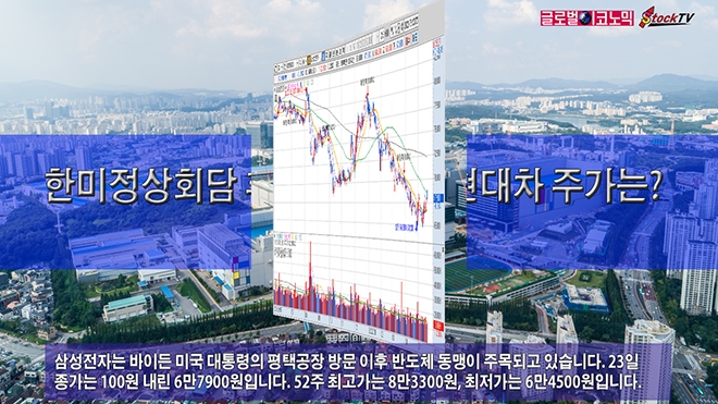 삼성전자는 바이든 미국 대통령의 평택공장 방문 이후 반도체 동맹이 주목되고 있습니다. 23일 종가는 100원 내린 6만7900원입니다. 52주 최고가는 8만3300원, 최저가는 6만4500원입니다.