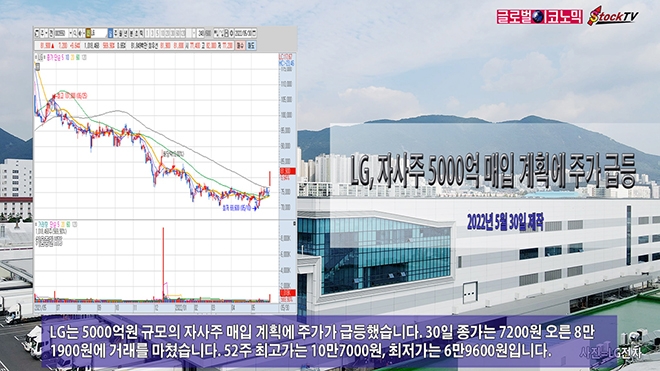 LG는 5000억원 규모의 자사주 매입 계획에 주가가 급등했습니다. 30일 종가는 7200원 오른 8만1900원에 거래를 마쳤습니다. 52주 최고가는 10만7000원, 최저가는 6만9600원입니다.