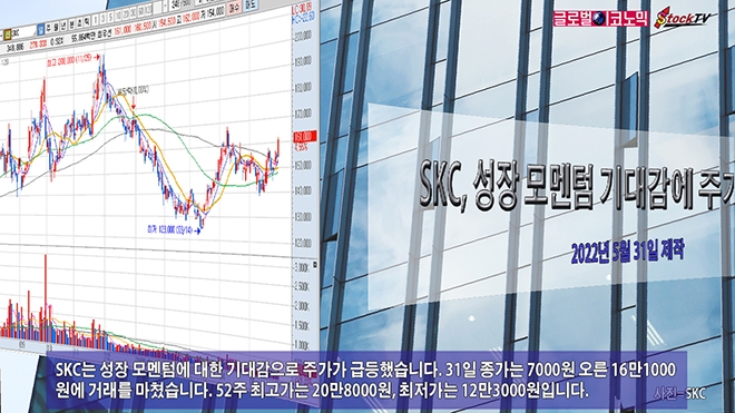 SKC는 성장 모멘텀에 대한 기대감으로 주가가 급등했습니다. 31일 종가는 7000원 오른 16만1000원에 거래를 마쳤습니다. 52주 최고가는 20만8000원, 최저가는 12만3000원입니다.
