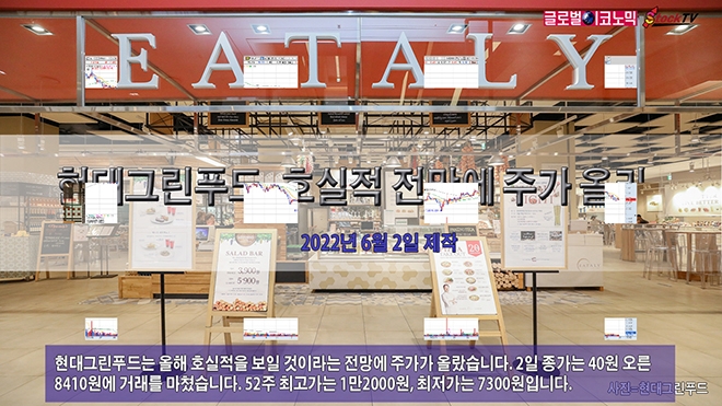 현대그린푸드는 올해 호실적을 보일 것이라는 전망에 주가가 올랐습니다. 2일 종가는 40원 오른 8410원에 거래를 마쳤습니다. 52주 최고가는 1만2000원, 최저가는 7300원입니다.