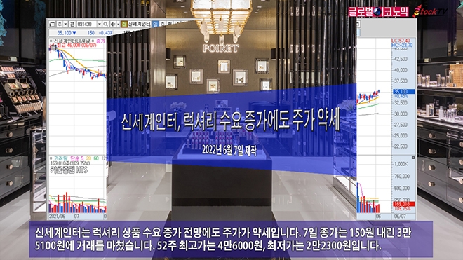 신세계인터는 럭셔리 상품 수요 증가 전망에도 주가가 약세입니다. 7일 종가는 150원 내린 3만5100원에 거래를 마쳤습니다. 52주 최고가는 4만6000원, 최저가는 2만2300원입니다.