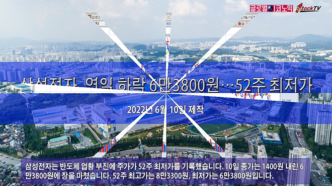 삼성전자는 반도체 업황 부진에 주가가 52주 최저가를 기록했습니다. 10일 종가는 1400원 내린 6만3800원에 장을 마쳤습니다. 52주 최고가는 8만3300원, 최저가는 6만3800원입니다.
