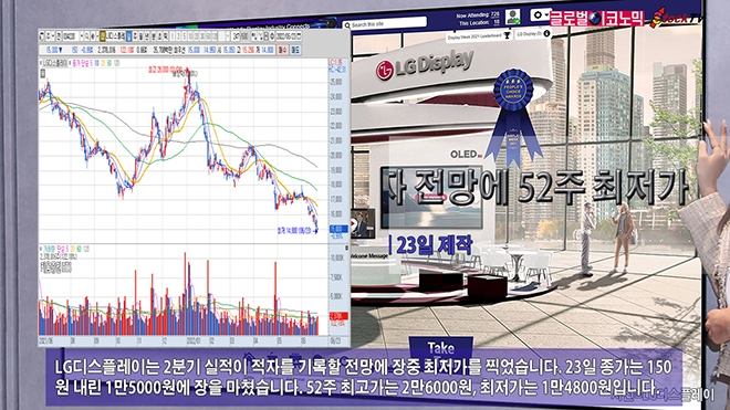 LG디스플레이는 2분기 실적이 적자를 기록할 전망에 장중 최저가를 찍었습니다. 23일 종가는 150원 내린 1만5000원에 장을 마쳤습니다. 52주 최고가는 2만6000원, 최저가는 1만4800원입니다.
