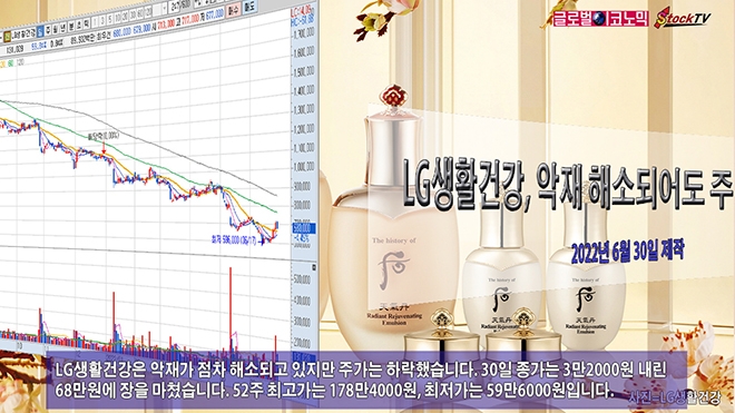 LG생활건강은 악재가 점차 해소되고 있지만 주가는 하락했습니다. 30일 종가는 3만2000원 내린 68만원에 장을 마쳤습니다. 52주 최고가는 178만4000원, 최저가는 59만6000원입니다.