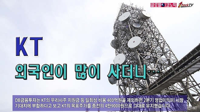 KT는 지난 1년여간 외국인의 비중이 늘어난 것으로 나타났습니다. 외국인의 비중은 지난해 7월 1일 44.12%에서 올해 7월 14일 44.90%로 1년여간 0.78%포인트 높아졌습니다.