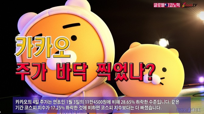 카카오의 4일 주가는 연초인 1월 3일의 11만4500원에 비해 28.65% 하락한 수준입니다. 같은 기간 코스피 지수가 17.25% 하락한 것에 비하면 코스피 지수보다는 더 빠졌습니다.