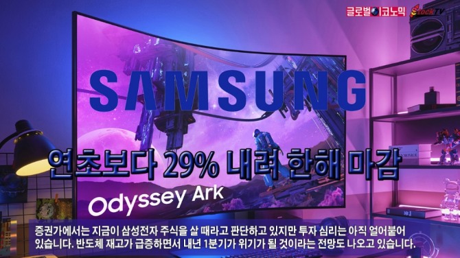 삼성전자의 12월 29일 주가는 연초인 1월 3일의 7만8600원에 비해 29.64% 하락한 수준입니다. 같은 기간 코스피 지수가 25.17% 하락한 데 비하면 삼성전자의 낙폭이 약간 더 큽니다.