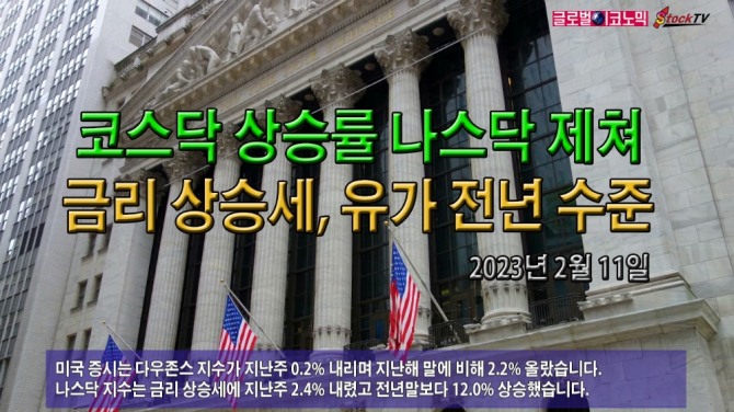 미국 증시는 다우존스 지수가 지난주 0.2% 내리며 지난해 말에 비해 2.2% 올랐습니다. 나스닥 지수는 금리 상승세에 지난주 2.4% 내렸고 전년말보다 12.0% 상승했습니다.