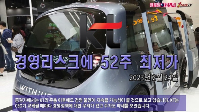 KT의 주가는 2월 24일 전일보다 1250원(3.94%) 내린 3만450원에 장을 마쳤습니다. 장중엔 52주 최저가 3만250원을 찍었습니다. 거래량은 441만여주로 전일보다 3배 가량 급증했습니다.