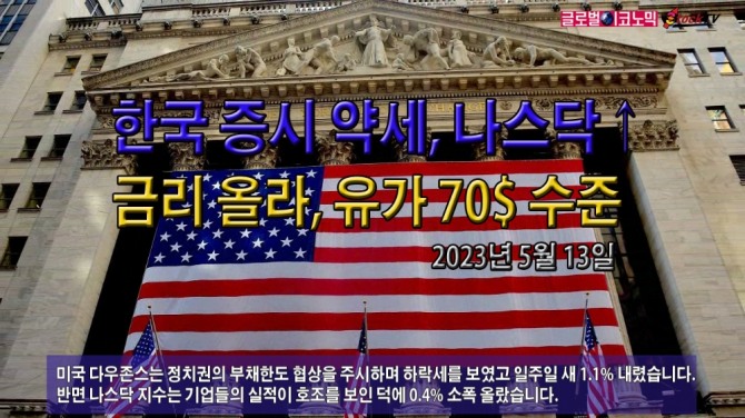 미국 다우존스는 정치권의 부채한도 협상을 주시하며 하락세를 보였고 일주일 새 1.1% 내렸습니다. 반면 나스닥 지수는 기업들의 실적이 호조를 보인 덕에 0.4% 소폭 올랐습니다.