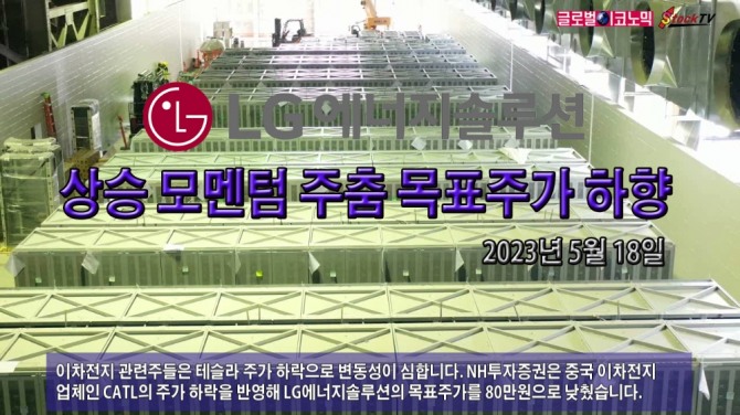 이차전지 관련주들은 테슬라 주가 하락으로 변동성이 심합니다. NH투자증권은 중국 이차전지 업체인 CATL의 주가 하락을 반영해 LG에너지솔루션의 목표주가를 80만원으로 낮췄습니다.
