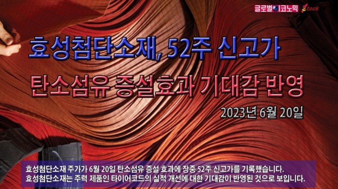 효성첨단소재는 20일 낮 12시 40분 현재 전일보다 2000원(0.41%) 오른 48만9500원에 거래되고 있습니다. 이날 오전 9시 34분께 52주 신고가 49만6500원을 찍었습니다.