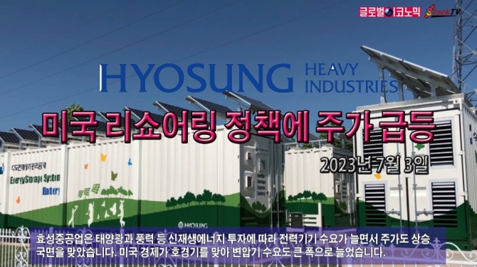 효성중공업은 태양광과 풍력 등 신재생에너지 투자에 따라 전력기기 수요가 늘면서 주가도 상승 국면을 맞았습니다. 미국 경제가 호경기를 맞아 변압기 수요도 큰 폭으로 늘었습니다.