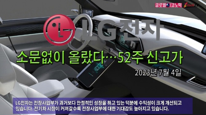 LG전자의 주가는 7월 4일 전일보다 1100원(0.87%) 오른 12만8200원에 장을 마쳤습니다. 장중엔 52주 신고가 13만2400원을 찍었습니다. 이날 거래량은 전일보다 2.2배 증가했습니다.