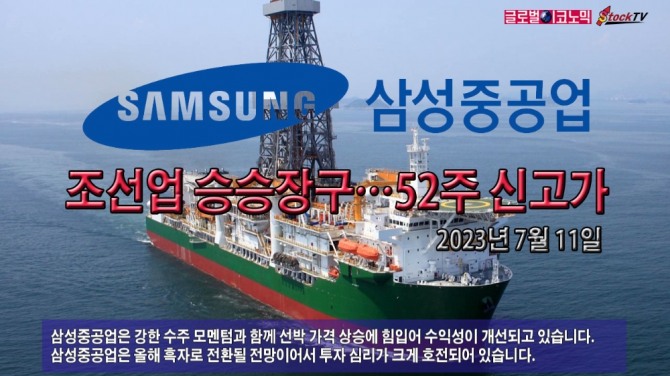 삼성중공업의 주가는 7월 11일 전일보다 340원(4.72%) 오르며 52주 신고가인 7540원에 장을 마쳤습니다. 이날 거래량은 1550만여주로 전일보다 79% 가량 증가했습니다.