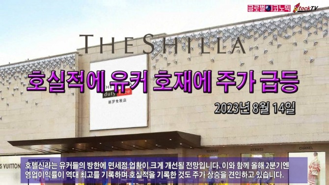 호텔신라의 주가는 8월 14일 전일보다 1800원(2.02%) 오른 9만1000원에 장을 마쳤습니다. 장중엔 52주 신고가 9만3200원을 찍었습니다. 이날 거래량은 전일보다 28%가량 줄었습니다.
