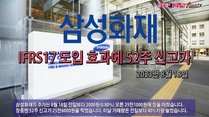삼성화재의 주가는 8월 18일 전일보다 2000원(0.80%) 오른 25만1000원에 장을 마쳤습니다. 장중엔 52주 신고가 25만6000원을 찍었습니다. 이날 거래량은 전일보다 40%가량 늘었습니다.