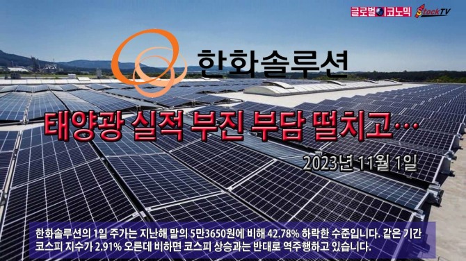 이미지 확대보기한화솔루션의 1일 주가는 지난해 말의 5만3650원에 비해 42.78% 하락한 수준입니다. 같은 기간 코스피 지수가 2.91% 오른데 비하면 코스피 상승과는 반대로 역주행하고 있습니다.