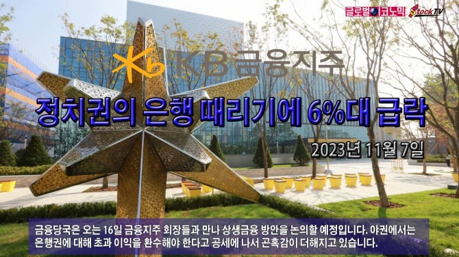 KB금융지주의 주가는 7일 전일보다 3400원(6.10%) 내린 5만2300원에 장을 마쳤습니다. 전날 공매도 금지조치로 오른 상승분을 고스란히 반납했습니다. 거래량은 전일보다 18% 늘었습니다.