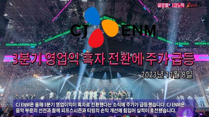 CJ ENM의 주가는 8일 전일보다 7500원(12.98%) 오른 6만5300원에 장을 마쳤습니다. 3분기 영업이익 흑자 소식에 투자자들이 몰리며 이날 거래량은 전일보다 8배가량 급증했습니다.