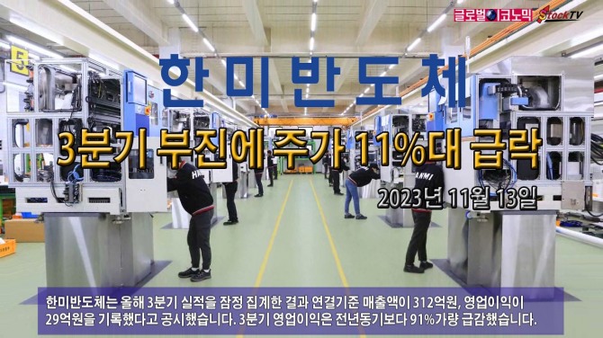 한미반도체는 올해 3분기 실적을 잠정 집계한 결과 연결기준 매출액이 312억원, 영업이익이 29억원을 기록했다고 공시했습니다. 3분기 영업이익은 전년동기보다 91%가량 급감했습니다.