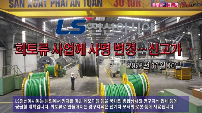 LS전선아시아는 내달 임시주총에서 사업에 해저케이블과 희토류를 포함시킬 예정입니다. 희토류 사업은 전기차 관련 사업을 확대하는 LS그룹 내에 시너지 효과를 줄 것으로 보입니다.