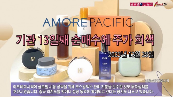 아모레퍼시픽의 주가는 28일 전일보다 7200원(5.22%) 오른 14만5000원에 장을 마쳤습니다. 주가는 사흘째 올랐습니다. 이날 거래량은 28만여주로 전일보다 3.8배가량 증가했습니다.