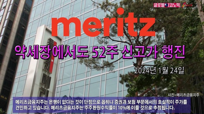 메리츠금융지주의 24일 주가는 전일과 같은 6만1900원에 장을 마쳤습니다. 장중엔 52주 신고가 6만2500원을 찍었습니다. 이날 거래량은 58만여주로 전일보다 45%가량 줄었습니다.