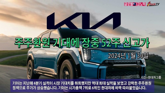 기아는 지난해 4분기 실적이 시장 기대치를 하회했지만 역대 최대 실적을 보였고 강력한 주주환원 정책으로 주가가 상승했습니다. 기아는 시가총액 7위로 6위인 현대차에 바짝 따라붙었습니다.