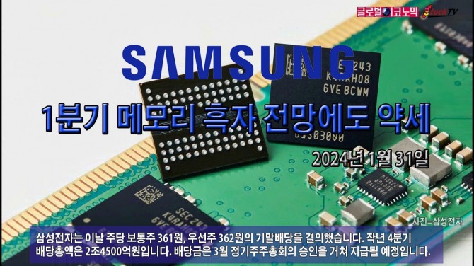 삼성전자는 이날 주당 보통주 361원, 우선주 362원의 기말배당을 결의했습니다. 작년 4분기 배당총액은 2조4500억원입니다. 배당금은 3월 정기주주총회의 승인을 거쳐 지급될 예정입니다.