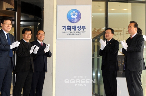 박재완 장관, 정부세종청사 기획재정부 현판식