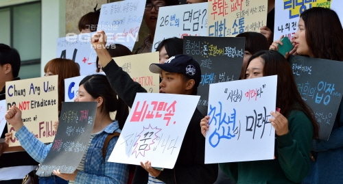 중앙대가 전날 전공 선택 비율이 낮은 인문대학 아시아문화학부 비교민속학과와 사회과학대학 사회복지학부 아동복지학과·청소년학과·가족복지학과 등 4개 학과의 폐지를 교무회의에서 최종 통과시킨데 따른 항의표시다.