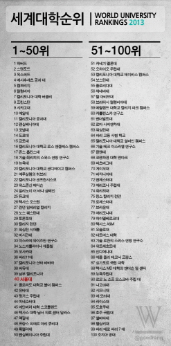 한편 톱100위의 순위는 CWUR 웹사이트(http://cwur.org/top100.html)에서 확인할 수 있다.