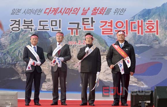 경상북도 이영우 교육감은 22일 포항시청 앞 광장에서 열린 일본 시마네현 다케시마의 날 철회를 위한 경북 도민 규탄 결의대회에 참석해 일본은 우리의 땅인 독도에 대한 영유권 주장을 즉각 철회하라고 요구했다.