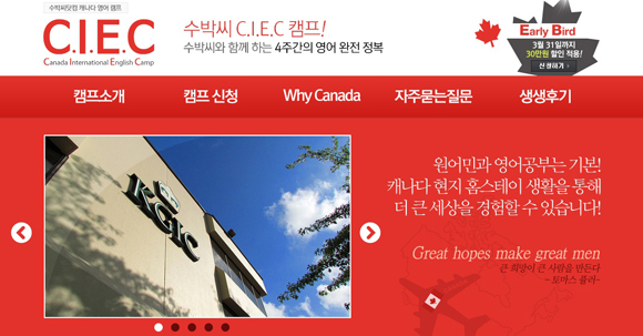 수박씨닷컴 캐나다 영어캠프 C.I.E.C(Canada international English Camp)는 캐나다 벤쿠버 근교 교육도시 써리에서 오는 7월 19일부터 8월 14일까지 약 4주간 진행된다. 수업은 캐나다 ESL 시스템으로 유명한 킹 조지 인터내셔널 칼리지(KING GEORGE INTERNATIONAL COLLEGE)에서 다른 나라 학생들과 소수인원으로 반을 구성해 이뤄진다.