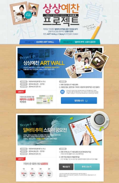 프로젝트는 크게 ‘상상예찬 ART WALL’과 ‘알바의 추억, 스토리 공모전’ 두 가지 형태로 진행된다.