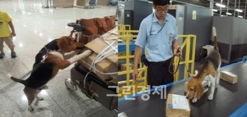 검역탐지견은 검역현장에서 해외여행자의 휴대품이나 국제우편물 등으로 불법 반입되는 농·축산물 등을 찾아내는 임무를 수행한다.