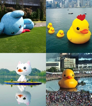 이미지 확대보기누리꾼들은 러버덕을 패러디한 '러버닭', '러버곰', '러버캣'의 이름에 러버덕 친구들을 만들어내 SNS에 공개했다. 특히 SNS에서 인기를 모은 '러버덕 쿵해쪄'의 패러디 사진인 러버곰의 경우 '바닥에 꿍해쪄'라는 제목으로 게시되 누리꾼들의 눈길을 붙잡았다.