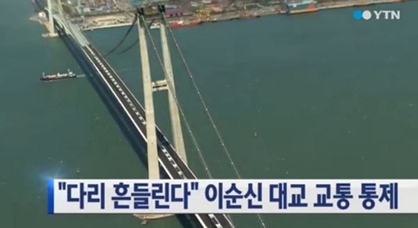 한편 이순신대교 교통 통제는 이순신대교가 평소보다 심하게 흔들린다는 신고가 여러 차례 접수되면서 26일 오후 6시경부터 이뤄지고 있다.