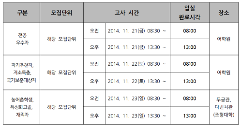 이미지 확대보기이번 수시 전형은 학생부종합전형으로 전공우수자, 자기추천자, 국가보훈대상자, 저소득층, 농어촌학생, 특성화고졸업 및 예정자, 특성화고졸재직자 등이 대상이다.