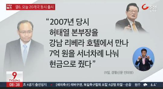 또 2007년 한나라당(현 새누리당) 대선후보 경선 때 허 전 실장(당시 캠프 직능총괄본부장)을 강남 리베라호텔에서 만나 경선자금 7억원을 3~4차례 나눠서 현금으로 줬다.