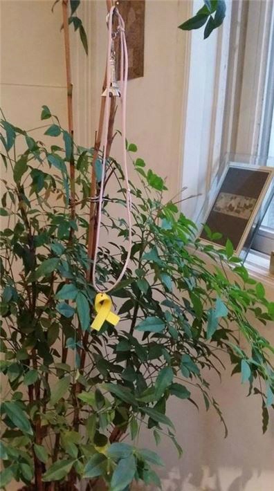 김부선은 16일 자신의 페이스북을 통해 "큰 비가 오시네요. 물 속에 갇힌 자들의 눈물 같습니다. 잊지 않겠습니다. 기억 0416" 이라는 글과 함께 노란리본이 걸린 나무 사진을 공개했다.