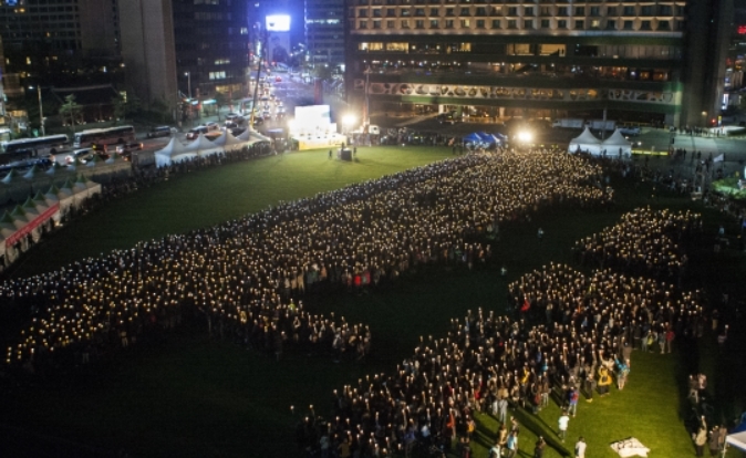 이미지 확대보기지난 17일 서울시청 앞 서울광장에서는 세월호 사고를 추모하는 시민들의 기네스북 도전 행사가 성사됐다.