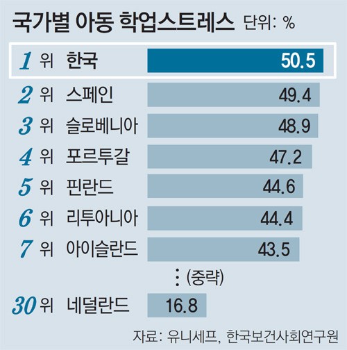 국제구호단체 세이브더칠드런과 서울대 사회복지연구소는 ‘아동의 행복감 국제 비교연구’ 결과 우리나라 아동의 주관적 행복감이 조사 대상 12개국 아동 가운데 가장 낮은 것으로 나타났다고 18일 전했다.